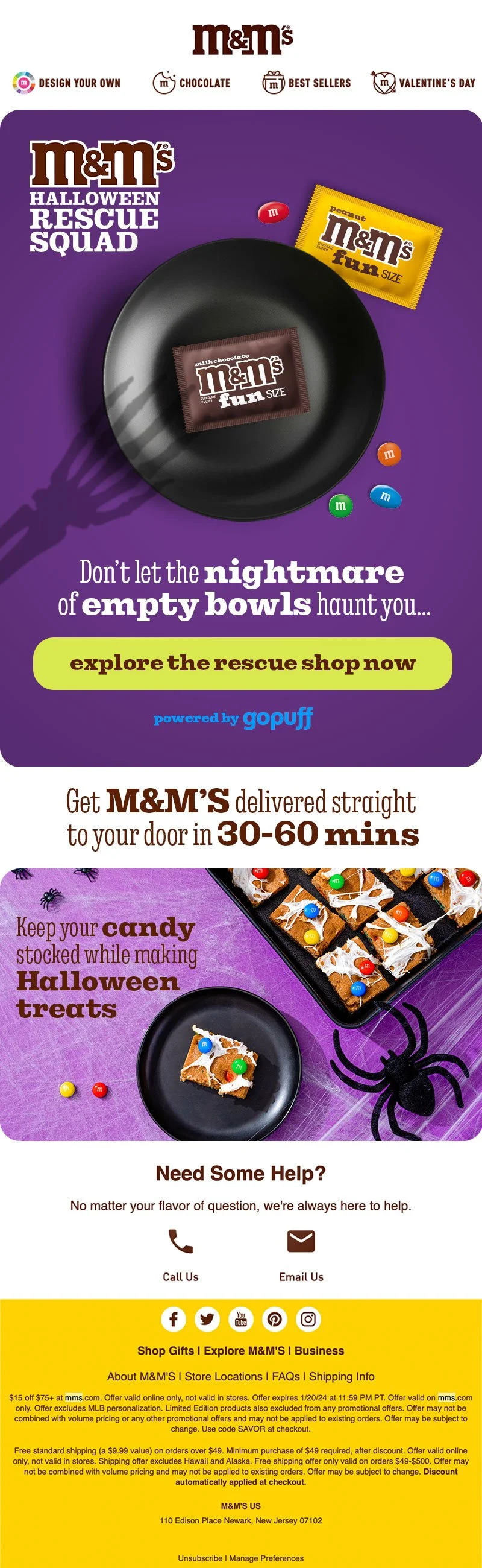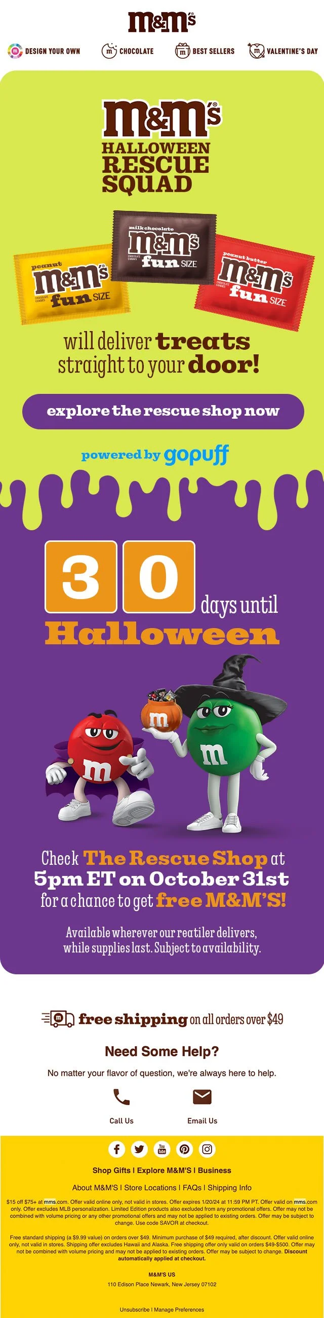 Halloween Rescue Squad - Ever run out of candy on Halloween from massive amounts of trick or treaters? Here comes the M&M'S Rescue Squad who ensures no household runs out of treats during their Halloween festivities. Direct to consumer activation that allowed people to order and have free candy delivered straight to their homes. In partnership with GoPuff.