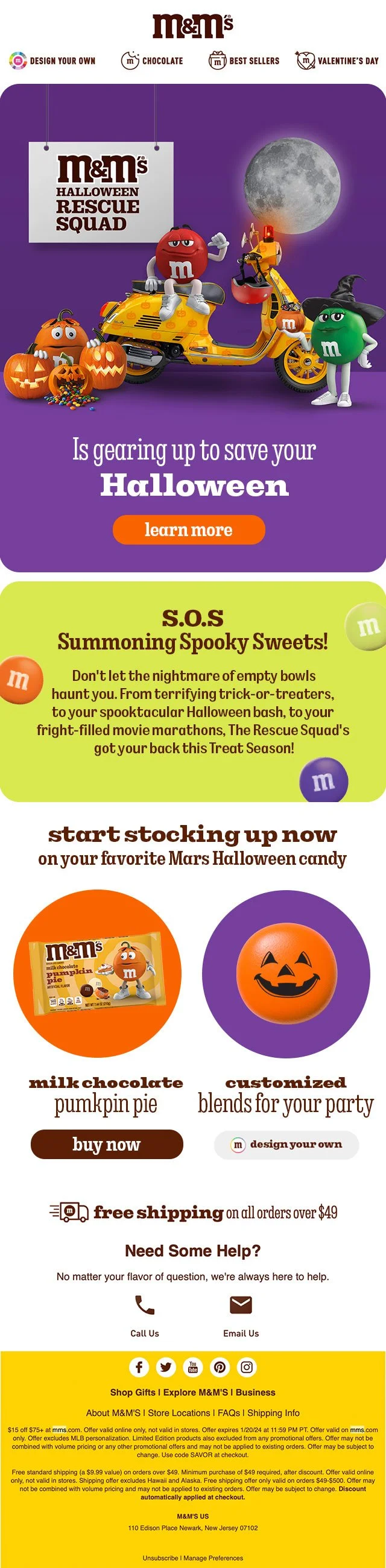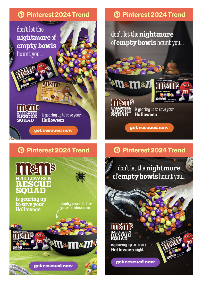 Delivered a holistic creative strategy + visual communication plan for M&M'S Halloween Rescue Squad. I led the creative development and executed all content for Halloween Rescue Squad including, 90+ paid videos used across programmatic, social, and digital placements. Worked in tandem with the M&M'S website team to develop a consumer experience journey by creating mobile + desktop layouts (UX/UI designs) for a landing page on MMS.com that housed all campaign information. Created an email marketing campaign for users who signed up to get reminders of the activation and content to support purchasing product for their Halloween festivities (through retailers and MRG).