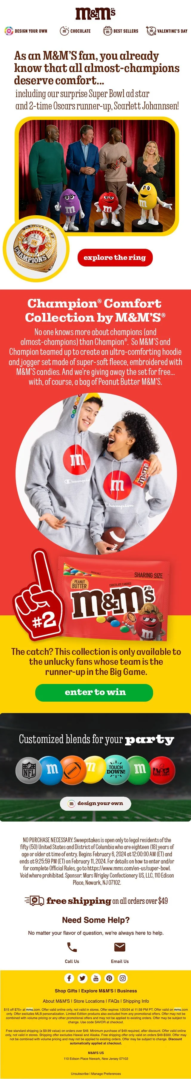 Created three emails used to roll out our superbowl campaign ‘almost champions’ and message our partnership with Champion.